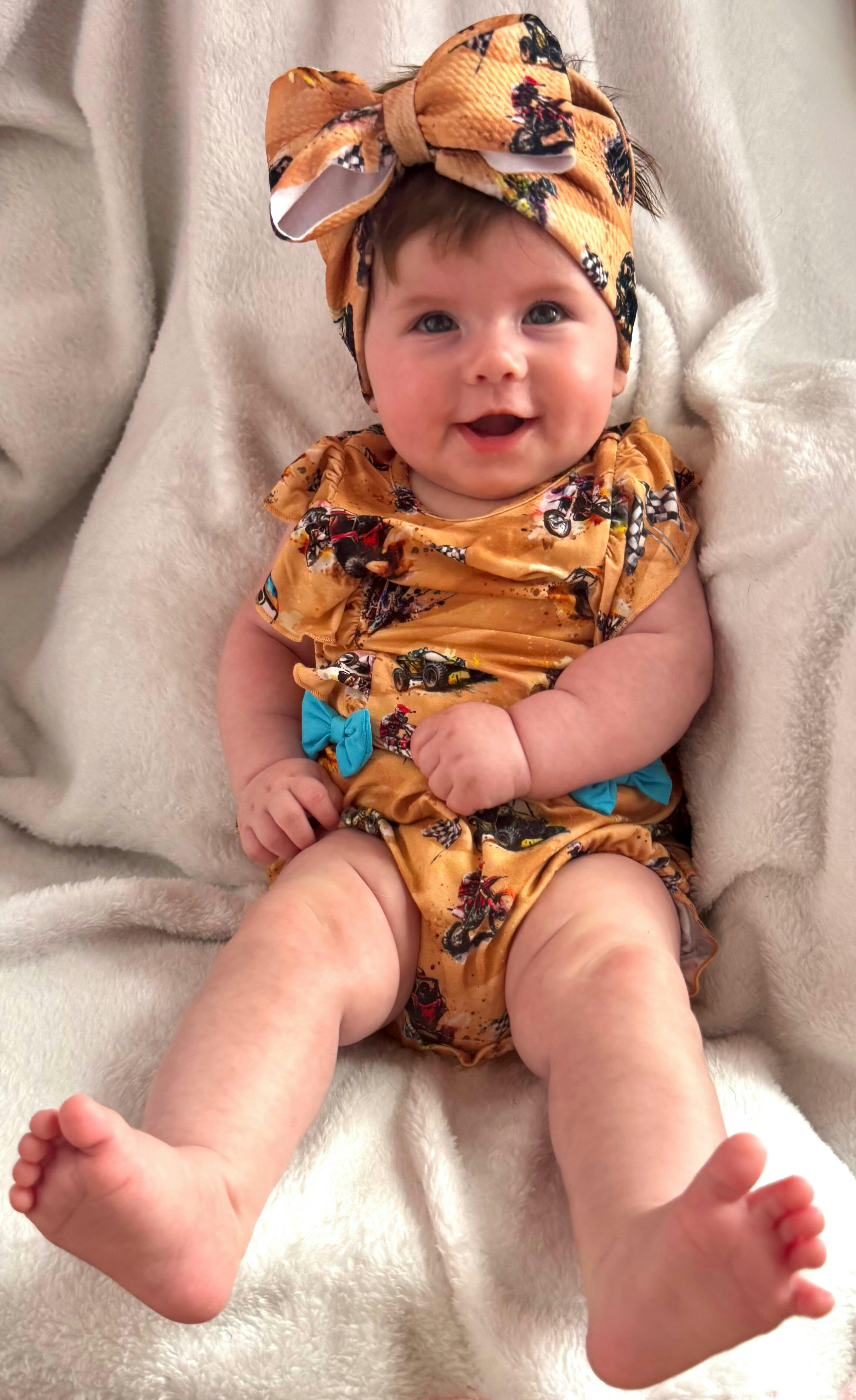Featuring ruffle details, adorable bows, and endless cuteness, this romper is perfect for your little one. Embrace the thrill of everyday adventures with this playful and stylish outfit!